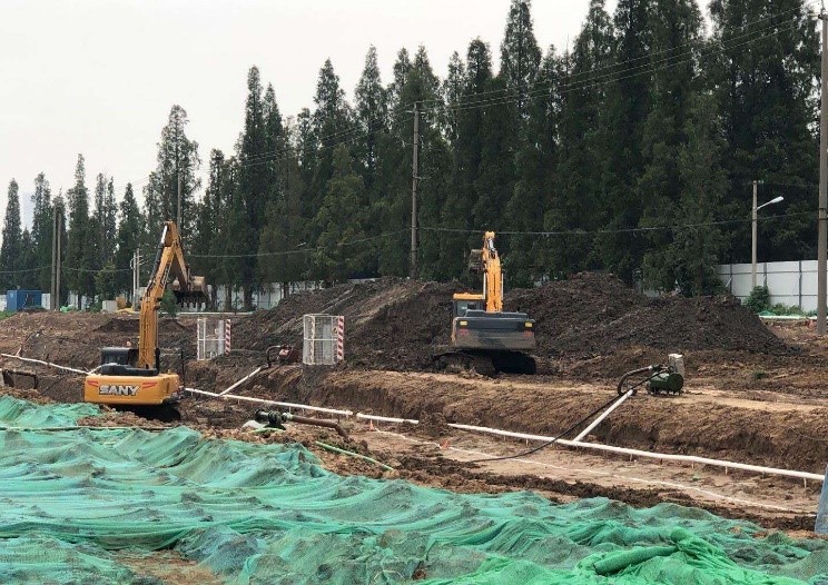 江心洲韭园路施工二标段是生态科技岛重点市政工程项目,包括四条道路建设,跨越江心洲南北两端,具有安全文明施工要求高、工期紧、地质条件复杂、安全风险大等施工难点。时值中秋、国庆“双节”,项目现场人员却不松懈,坚守工作岗位,抓住黄金施工时间段,全力加速项目进度。