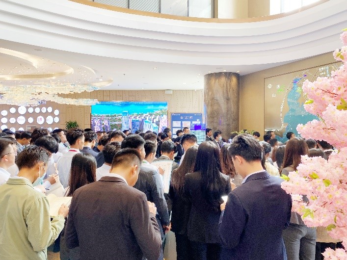 此次“双节”是家人团聚的好时机,但正值楼市“金九银十”的重要时刻,绿地·健康城营销中心的员工选择奋战在第一线,为完成全年业绩指标努力奋斗。他们准备了现场成交砸金蛋、线上小游戏等丰富的活动,激发了客户的热情和兴趣,氛围热闹非凡。