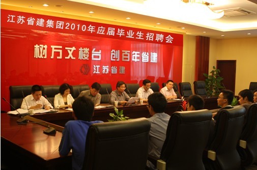 招聘面试会上,人力资源部经理王跃明首先向面试毕业生介绍了江苏省建集团发展情况及新员工的职业生涯规划和薪资福利等。在随后的面试环节,由总裁仇天青、党委副书记仇伟明、副总工程师高宝俭及人力资源部、市场经营部、海外公司等管理人员组成的面试考评组与每名面试人员进行了单独交流,对面试毕业生的沟通技巧、专业水平、发展潜质等进行了多方面的考察。经过严格的评测,与24名工程类优秀毕业生初步达成就业意向。