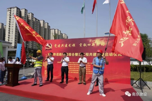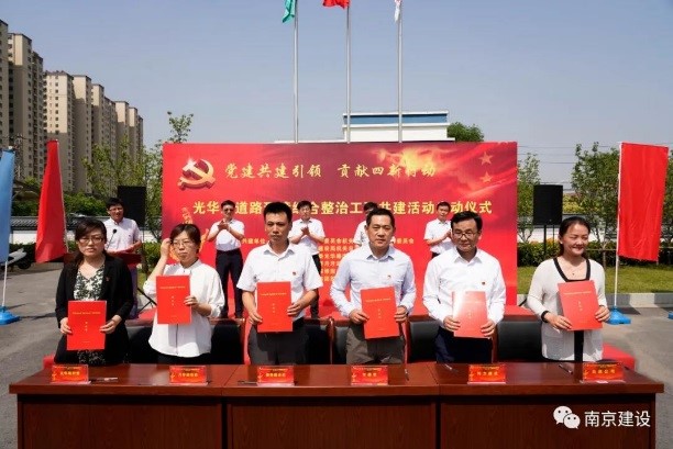 6月4日,项目部与南京市建委、南京市秦淮区住建局等六家单位党组织在项目部举行“党建共建引领·贡献四新行动”党建结对共建活动,通过设立党员突击队、党员先锋岗,建立“书记工作室”和沟通协调机制,共同加快推动光华路环境综合整治项目施工,实现党的建设引领项目建设的“加速度”,确保工程国庆前竣工通车。