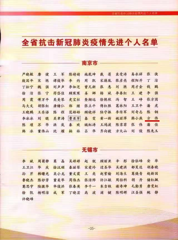 致敬!方伟荣膺“江苏省抗击新冠肺炎疫情先进个人”称号