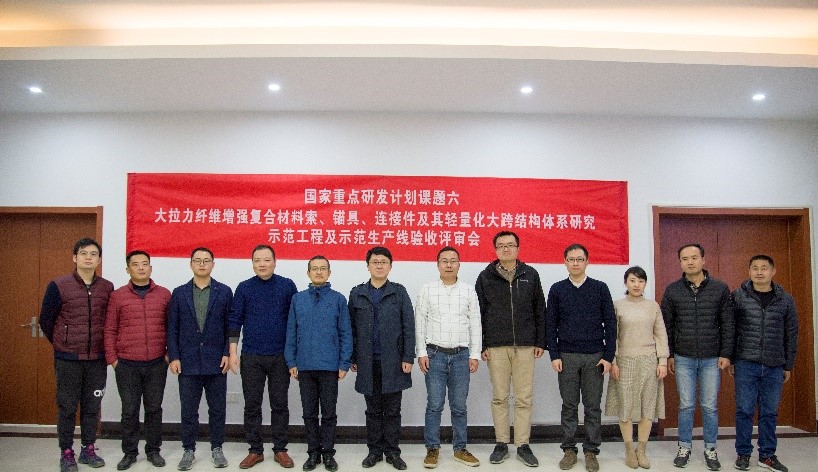 由江苏绿材谷新材料科技发展有限公司、东南大学、中国人民解放军陆军勤务学院等单位共同承担的国家“十三五”重点研发计划绿色建筑及建筑工业化专项“高性能纤维增强复合材料与新型结构关键技术研究与应用”项目课题——“大拉力纤维增强复合材料索、锚具、连接件及其轻量化大跨结构体系研究”的示范生产线验收会近日召开。