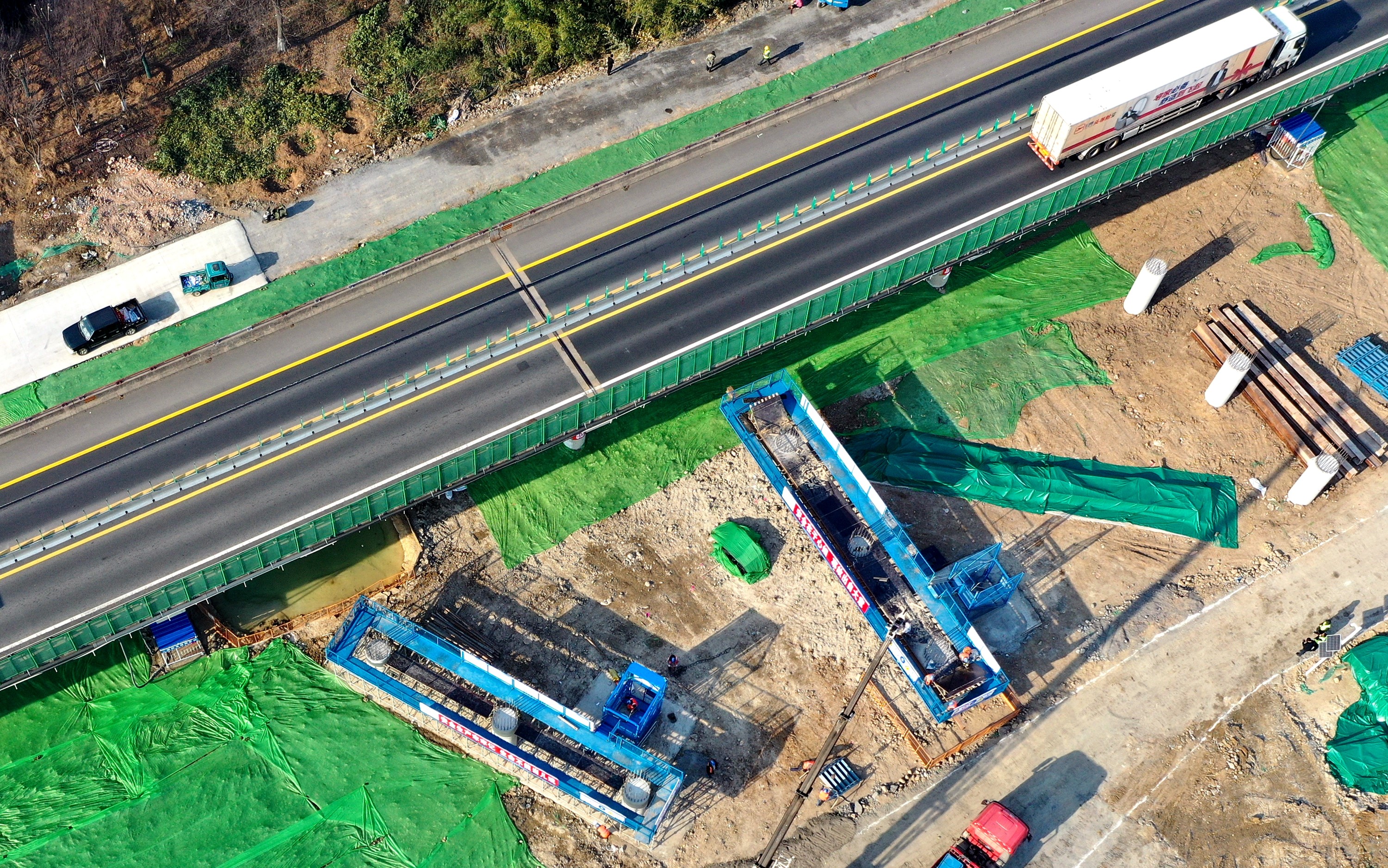 连日来,江苏交工承建的京沪高速公路改扩建工程沐阳县境内JHK-SY3标段呈现一派热火朝天的景象,一线工人们抓住晴好天气,加紧推进模板吊装、格构柱焊接以及预制箱梁的钢筋胎绑扎等工程。