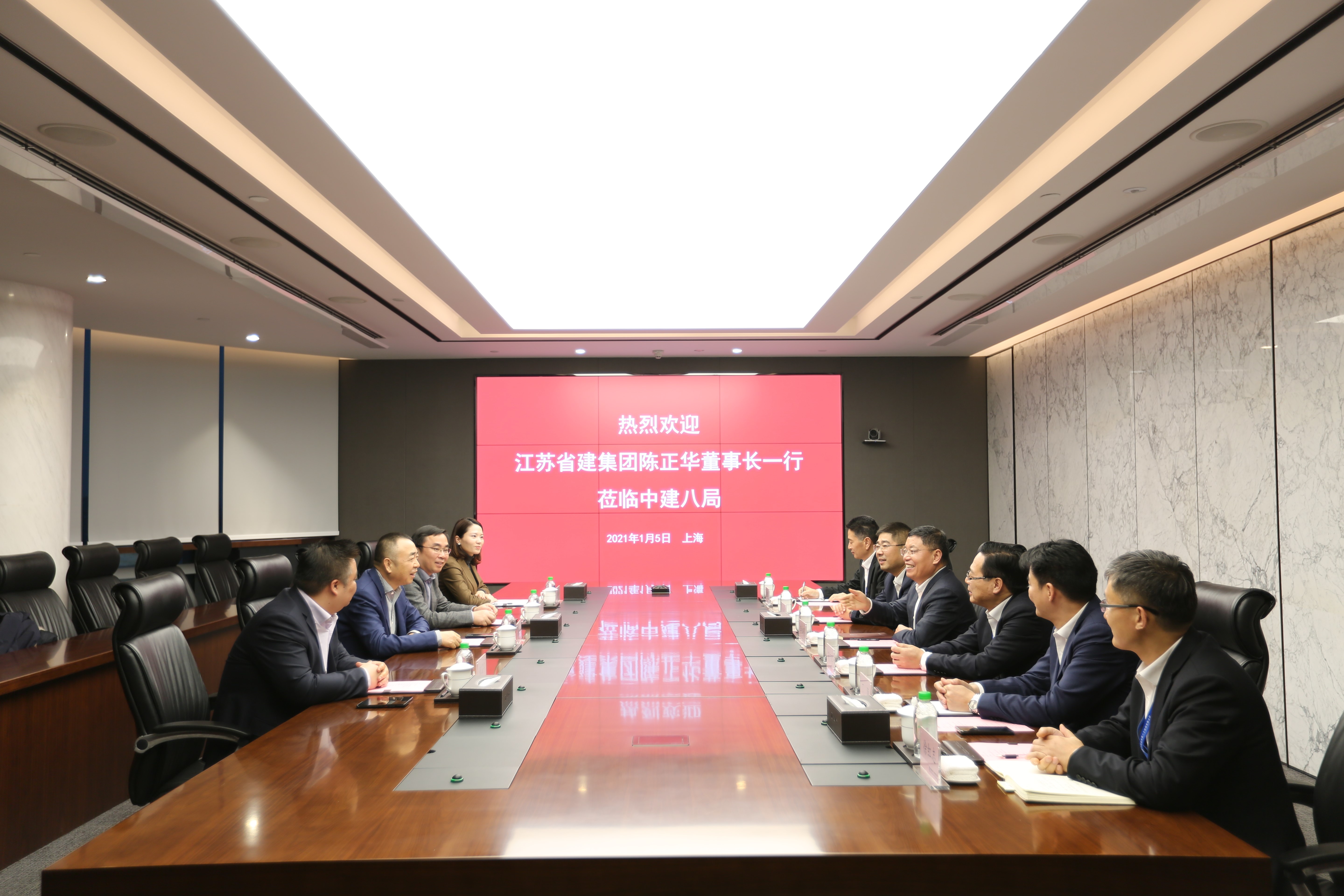 陈正华感谢李永明董事长的热情接待,并介绍了江苏省建五大产业板块以及2020年生产经营情况。他表示中建八局作为中建系统的骨干单位,一直是江苏省建对标学习的榜样和标杆。未来随着加快形成以国内大循环为主体、国内国际双循环相互促进的新发展格局,建筑业发展将迎来新的契机,希望在今后工作中,能与中建八局加强全方位的交流与合作,促进双方业务资源的优势互补,进一步实现合作共赢发展。