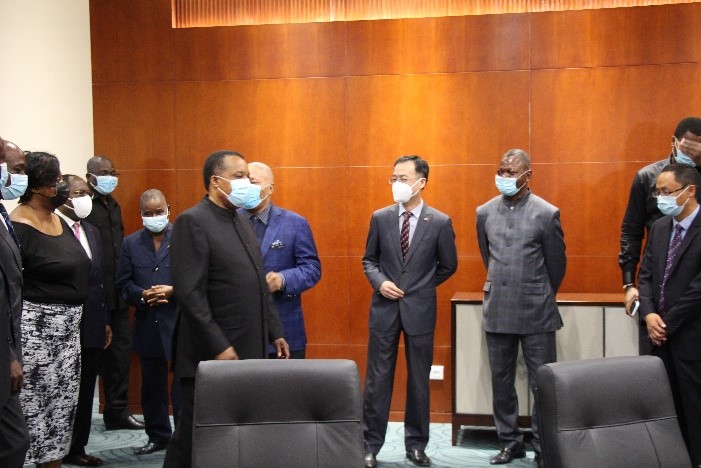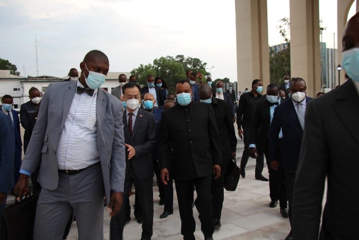 2月1日,在驻刚果(布)大使马福林的陪同下,刚总统萨苏视察了中国政府援建、集团承建的援刚果(布)新议会大厦项目。刚参议长、国民议会议长、总理和部分内阁成员等陪同视察。