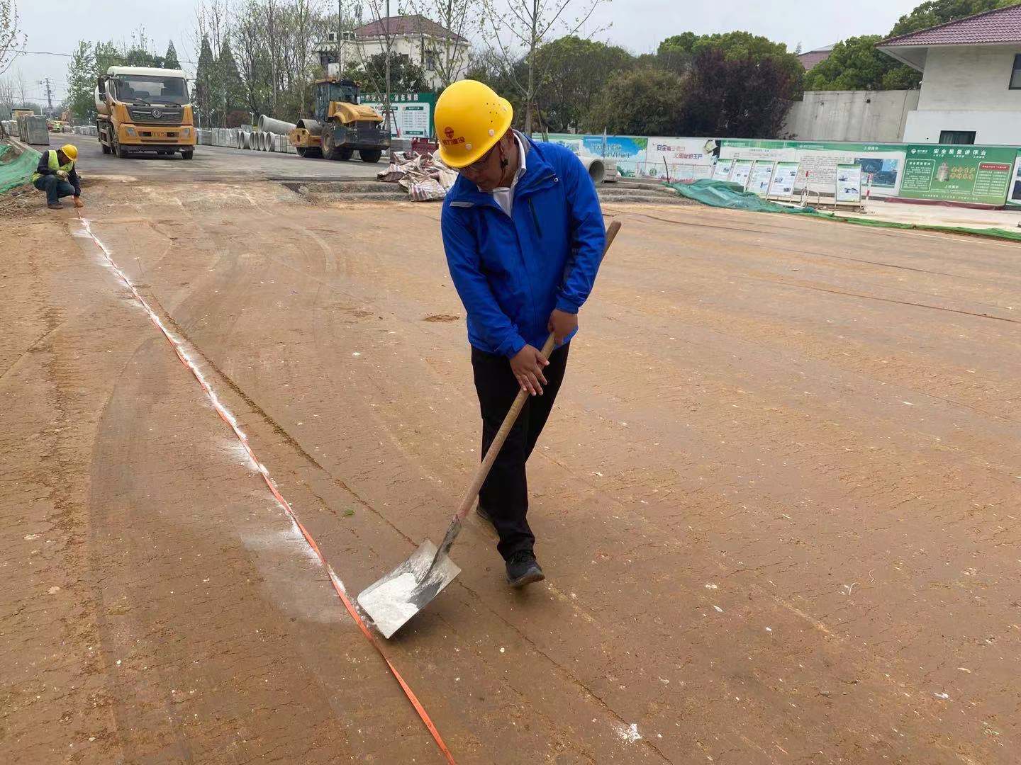 为建市民满意路,项目全体施工人员“五一”期间坚守工作岗位,争分夺秒推进工期。截止目前,已累计完成钻孔灌注桩施工65根,承台18座,墩身18座,深搅桩126128m,混凝土浇筑14064m³,沥青摊铺5120吨。在“五一”劳动节当天,工人师傅们就开始收尾沥青摊铺工作,他们用手中的铁锨铺平施工道路的每一个角落,用汗水浇灌城市美好的未来。