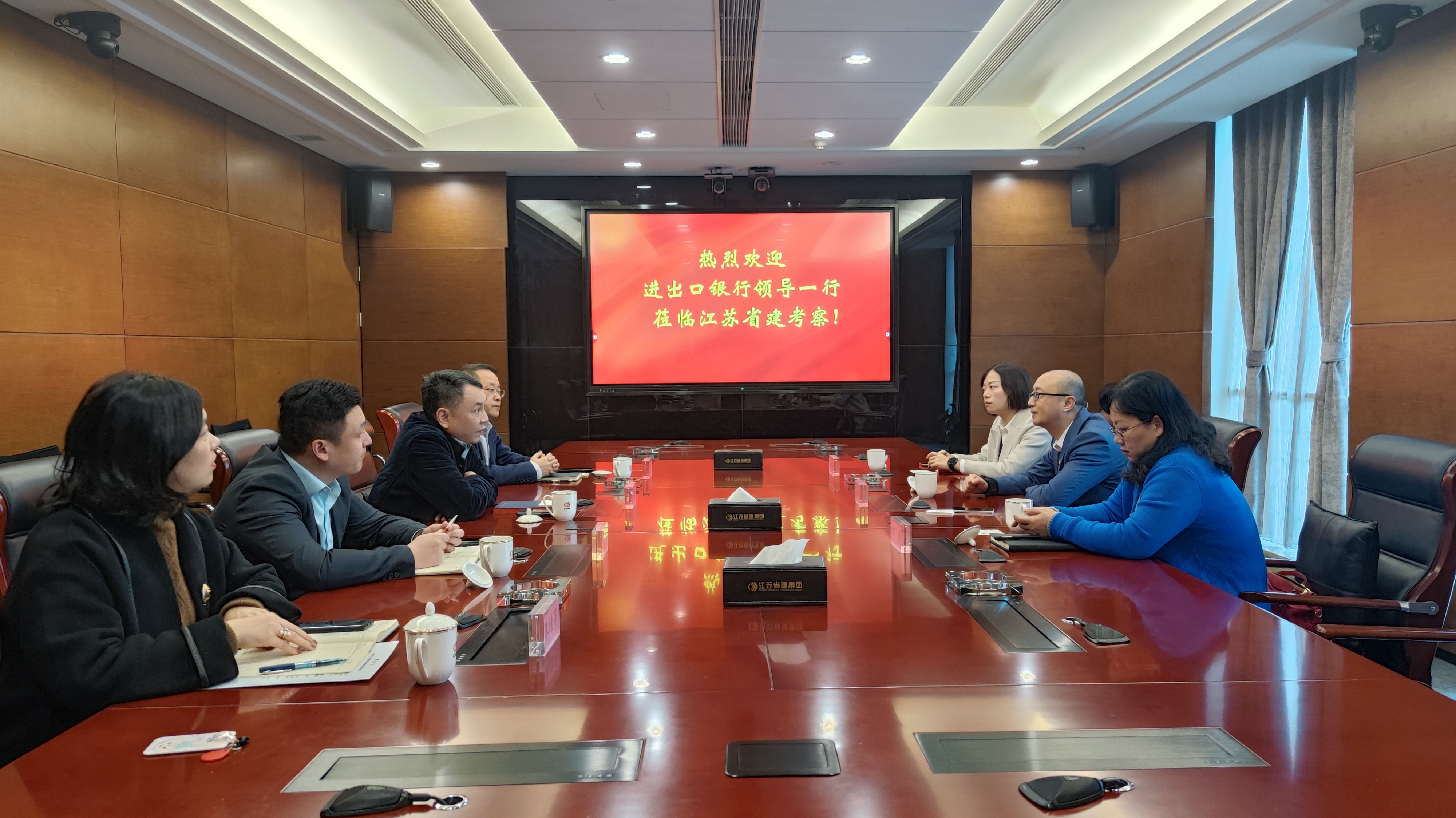 中国进出口银行江苏省分行客户一处,集团资金运营中心相关负责人参加座谈。