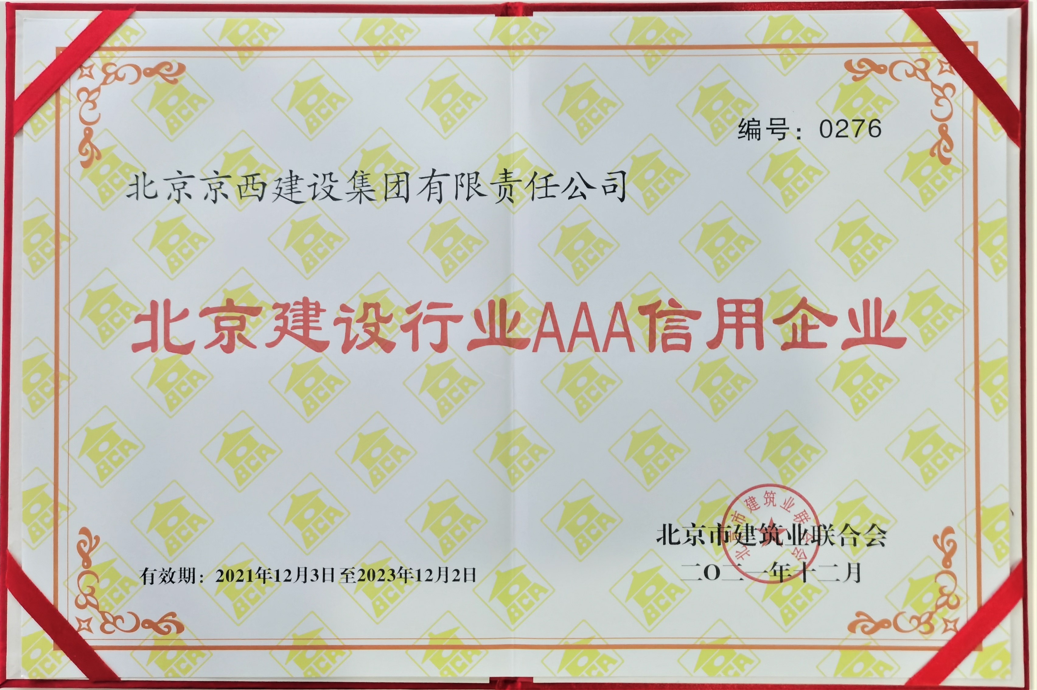 █京西建设被授予“北京建设行业AAA信用企业”荣誉