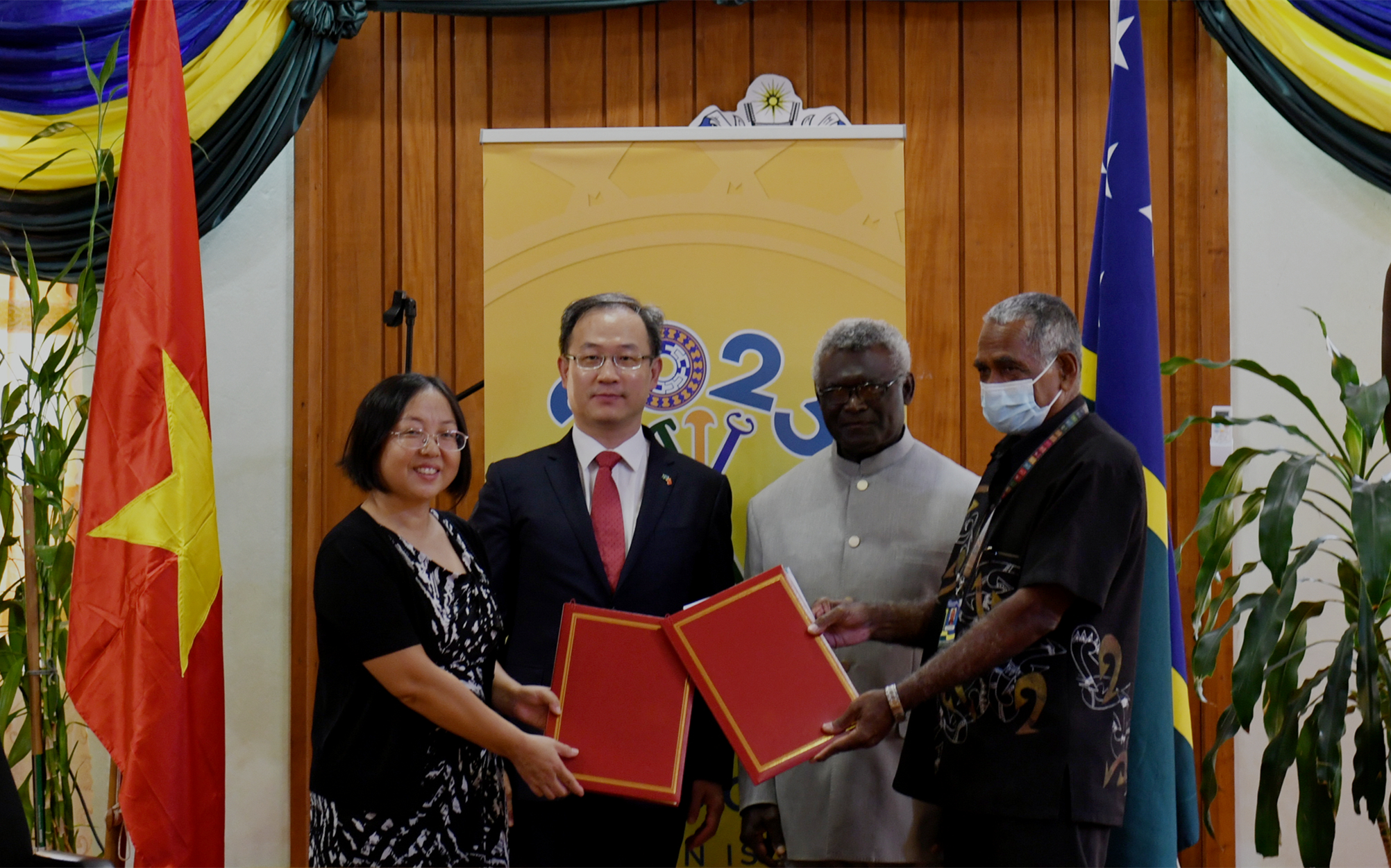 █中国驻所罗门群岛大使李明与所总理索加瓦雷出席项目实施协议签约仪式