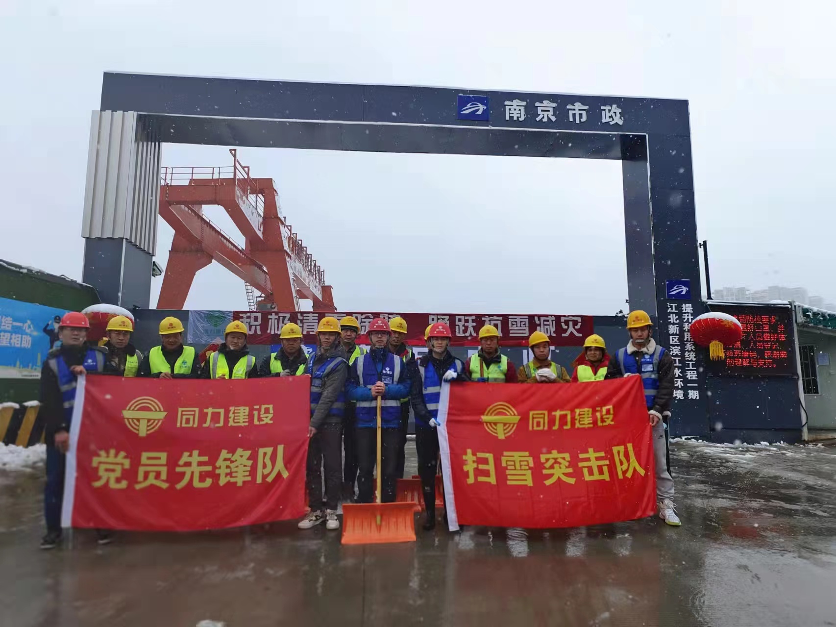 江北新区水环境一期项目部按扫雪防冻应急方案要求,组织项目管理人员及工人对各工作井周边及滨江大道开展扫雪除冰作业,采取人工加机械除雪、撒布融雪剂等措施,做到冰雪天气道路不封闭,实现“路畅人安”的工作目标。